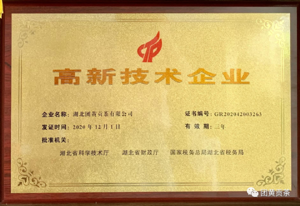 湖北團黃貢茶有限公司被省科技廳、省財政廳、省稅務(wù)局評定為“高新技術(shù)企業(yè)”